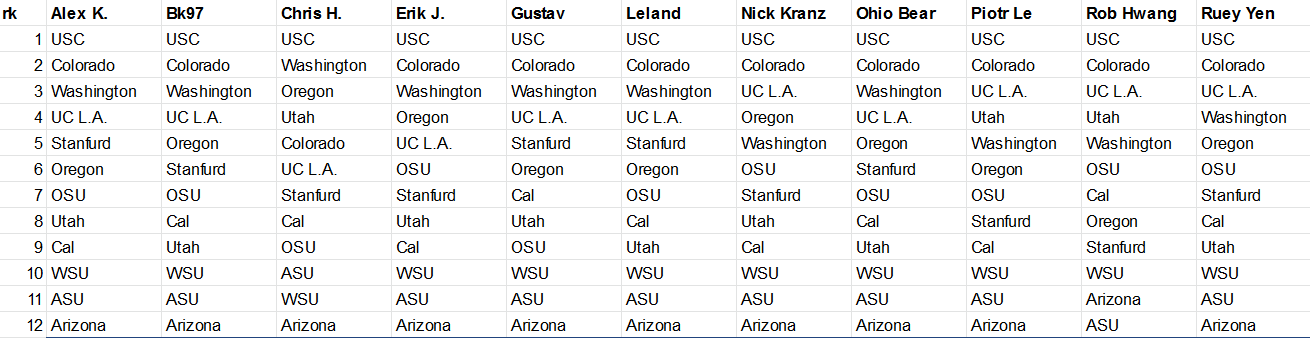 Nick Kranz (8): Going 1–1 in two coin-flip games and getting trounced by USC mostly indicates to me that USC is clearly the best team in the conference.