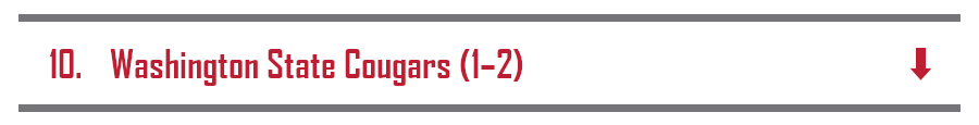 Ohio Bear (11): ASU has only played two games, but they’ve managed to lose both despite leading with 1:30 to play in both of them. I don’t know what to make of them, as they haven’t played much football and have lost close games to two good teams. But until they win a game, I didn’t feel right putting them any higher than 11th.