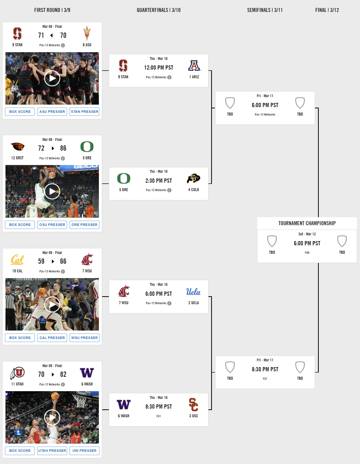 UCLA, when healthy, is stacked from top to bottom. Same team that last year went to Elite 8 and had the excellent nailbiter against the Zags. They are fun to watch. I predict they'll be the last Pac team standing in the tournament.
