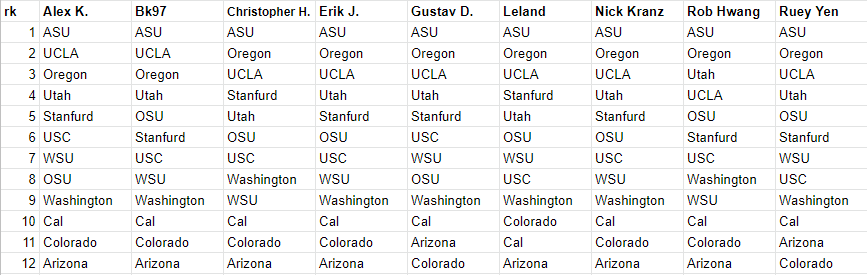 Christopher_h (8): Losses to an FCS team and Oregon State while squeaking out an overtime win against Cal? The Jimmy Lake era has not been off to a great start. Ranking them eighth seems fair.