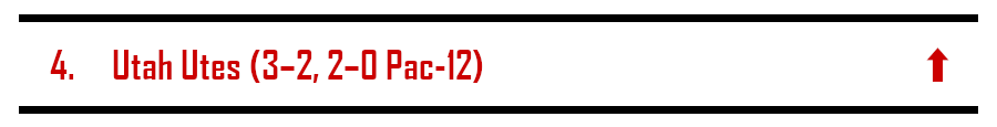 Berkelium97 (5): Despite being outgained by USC, this was an easy victory for the Utes. They spent most of the second half sitting on a 99%+ win probability according to ESPN’s predictions. The Utes were slightly disappointing during the first half of the year—can this win propel them to a stronger second half of the year? The schedule gets much tougher from now on with home games against ASU, UCLA, and Oregon and road games against OSU and LSJU.