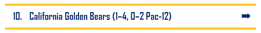 Christopher_h: If you’re unhappy with any of the game results this week, I take full responsibility. Without Cal to root for, my bad juju luck was directed at other innocent bystander teams. I was pulling for OSU over Wazzu—they lost. Right when I thought Arizona had a chance to pull the upset and got invested in the game, UCLA started pulling away. Stanford and USC lost (which is good), but that probably happened because I was pulling for them to at least beat the spread after I bet on them this week (spoiler: they didn’t). Clearly the solution here is to start betting against Cal, but I just never have the heart to do it.