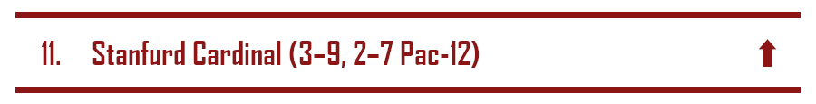 Berkelium97 (11): The season started pleasantly well with wins over USC and Oregon. Then they started looking worse and worse each week as they finished the year on a remarkable seven-game losing streak. Like Nick said, David Shaw is surely capable of a bounce-back year. But it feels like the excruciating series of 9+ win seasons has finally come to a merciful and permanent end.