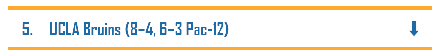 Berkelium97 (3): The Bruins rode a dominant run game and a surprisingly effective DTR to a solid season. Other than the loss to ASU, all their losses came to teams with 10 wins. In isolation, it was a solid year. But UCLA fans have been waiting for years for Chip Kelly to do something with this team and this is the best he can do? That’s probably why UCLA still hasn’t extended his contract, which expires this season…