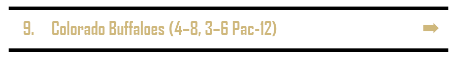 Nick Kranz (10): The indignity of your starting quarterback transferring to a conference rival only to ride the bench played out exactly as you would imagine; Colorado had the worst offense in the conference by a wide margin—and one of the worst offenses the conference has seen since the days of Paul Wulff. Not exactly an encouraging year under an offensively minded head coach.