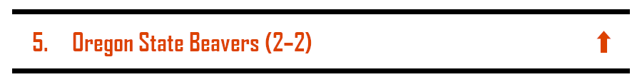 Christopher_h (7): I rated OSU highly in the preseason and felt immediately stupid for doing so after they lost to Washington State, but at least I’m comfortable putting them in the middle of the conference again. Jermar Jefferson gashed the Oregon defense all night long and the OSU offensive line opened plenty of holes for him to run through. I think their ceiling is at quarterback, but QB Tristan Gebbia was injured on the second-to-last play of the game, so it’ll be interesting to see if he recovers in time or see whom else they have at QB. If RB Jermar Jefferson can stay healthy, they can probably score on anyone.
