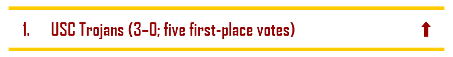 Ohio Bear (2): I was ready to mechanically elevate USC to my top spot after Oregon’s loss and Utah jumping out to a 21–0 lead at Washington. But then the Huskies came back to win and I was forced to confront USC’s Covid bye. Call it recency bias, but UW’s second half comeback nudged them ahead of the Trojans in my rankings this week.