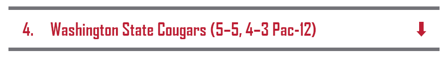 5. Wazzu. Hung with Ducks for a while, still disappointing to lose by 14.