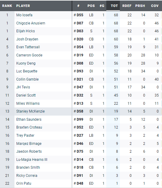 Unfamiliar with PFF and their scouting grades? Go back and read last week’s introduction, which will help you contextualize the numbers we’ll be discussing below.