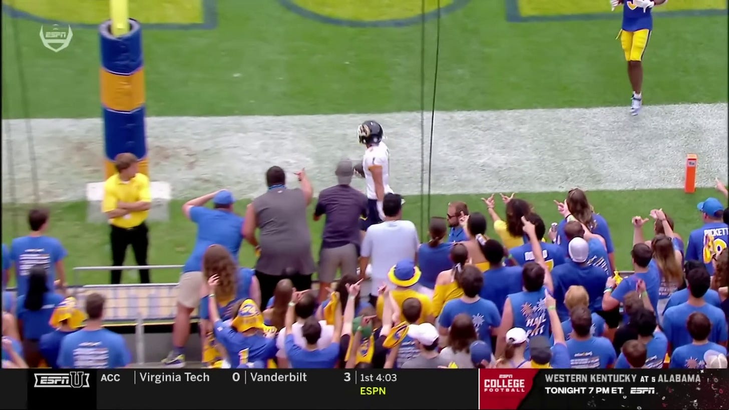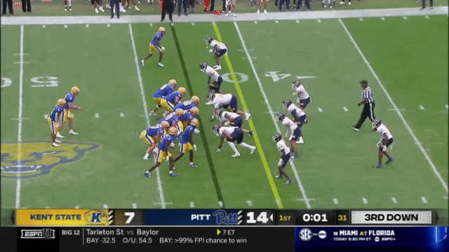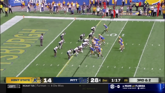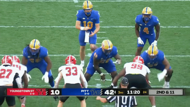 Narduzzi is now on his 6th offensive coordinator, Kade Bell. (Hmm, a defensive-minded head coach who keeps looking to new offensive coordinators after anemic offenses year after year). The job vacancy isn’t really a surprise after the 2023 Pitt offense was the worst in the ACC (116th/133 in the FBS) as Pitt posted a 3-9 season. Kade Bell was previously the offensive coordinator at FCS Western Carolina, who he led to a top-10 offense. Pitt runs a very fast, uptempo offense. Pitt rarely lets more than 15 seconds tick off the play clock, and they will immediately rush to snap the ball after any big play to try and keep a defense on their heels.