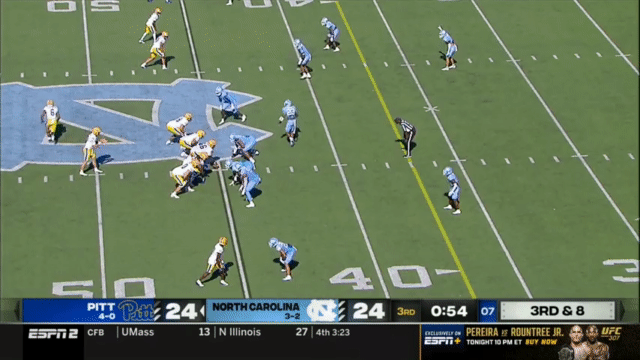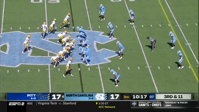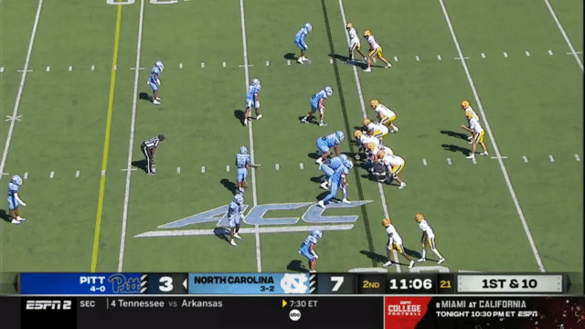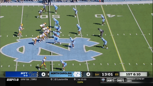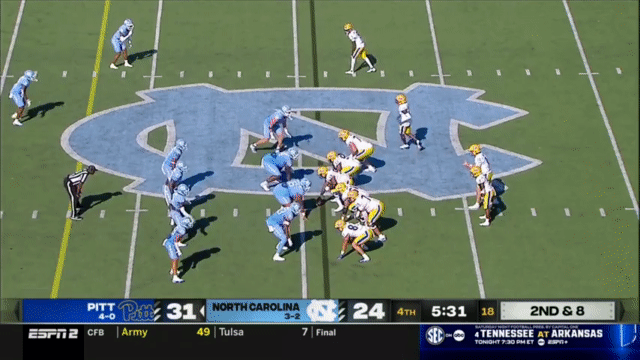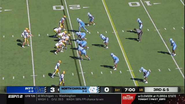 Because of Holstein’s size and running ability (and willingness to take a hit), Pitt also ran a few QB Power plays last week against North Carolina.