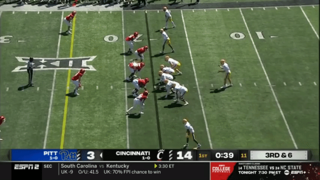 The downside for Pitt is that they rely so heavily on Reid for his play-making abilities that he’s getting banged up. He left last week’s game against North Carolina early, but even before that, he was often seen grabbing his leg in pain after tackles (although he would refuse to come out of the game). Reid even sat out of their matchup against an FCS team to take an extra week to recover. Sounds familiar, doesn’t it?