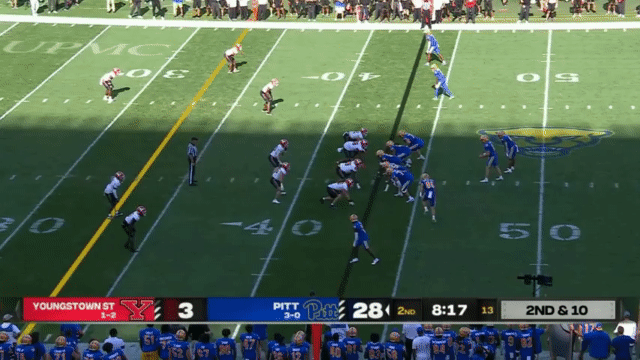 Pitt is led by the Alabama transfer and redshirt freshman Eli Holstein. He has prototypical NFL size, and aspires to be like Buffalo Bills QB Josh Allen: "A big, strong-armed dude that’s freakishly athletic for his size". Before committing to Alabama’s Nick Saban, Holstein was a hyped quarterback recruit with offers from pretty much everyone: Georgia, Ohio State, LSU, Oregon, etc. Holstein competed at the Elite 11 in Las Vegas and set a new record SPARQ rating for a quarterback (e.g. 40 speed, jumping, lateral agility, etc), showcasing that his athleticism is indeed elite, and with strong enough arm to show that he’s a high-ceiling player. Despite Holstein has documented athleticism, he’s more of a scrambler looking downfield than a tuck-it-and-run type of player. And although Holstein has a strong arm, he is most accurate on short to intermediate throws.