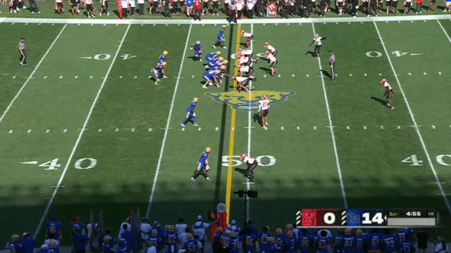 Desmond Reid is the focal point of the offense; much of the offense is predicated on the attention that Reid commands from opposing defenses. The 5’8” 175 lbs. running back is an explosive athlete, and he’s able to break off homeruns in both as a runner and as a receiver. His speed makes him a mismatch for linebackers trying to cover him on routes out of the backfield. Coverage defenders need to give him a big cushion due to his speed, but he’s also very shifty and elusive in open space which makes him difficult to bring down. As a result, Reid is responsible for a number of explosive plays: in 4 games, Reid has 9 plays of 20+ yards, and 3 plays of 45+ yards. Despite playing just 4 games (and dealing with injuries during some of them), Reid is currently 2nd in the FBS in all-purpose yards, trailing only Boise State’s RB Ashton Jeanty.