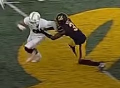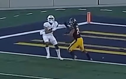 There’s not a ton to dispute about the call - Hicks grabs St. Brown as he moves down the field. But it’s also true that the hold doesn’t particularly impede St. Brown’s movement down the field, and Mills never even looks at Hicks. The hold was relatively minor and largely incidental to the play. It’s the kind of thing that wouldn’t be remotely surprising if it isn’t called. Stanford eventually scored a touchdown on the drive.