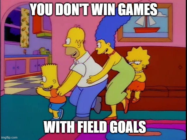 Cal, conversely, attempted five 4th down conversions, four of which came in plausible field goal range for some kickers. But I am reminded of my personal football maxim: