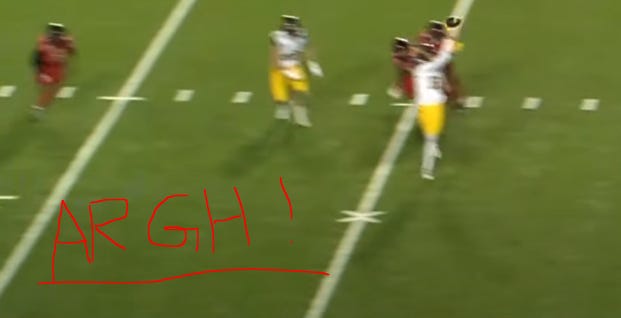 A whole bunch of mistakes across the entire defense, really. You’ve got some iffy tackling, though that’s Tahj Boyd’s whole deal so no surprise there. You’ve got a linebacker losing a tight end in coverage downfield. You’ve got a safety missing a coverage assignment in a deep zone. You have corners getting beaten for contested catches.