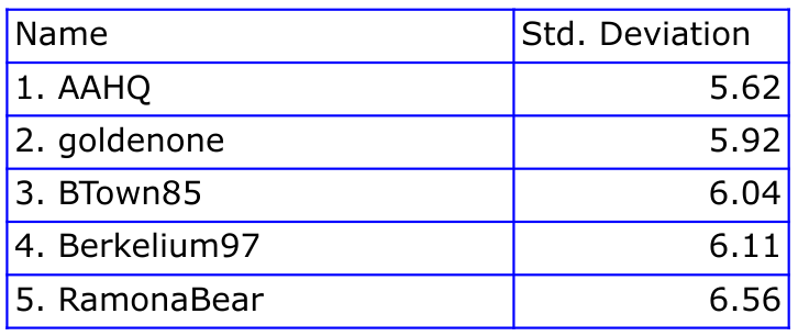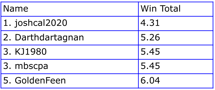 Finally, we have those whose predictions were closest to the community average. Nice job staying rational and reasonable amid the rising swell of optimism that always accompanies a new season.