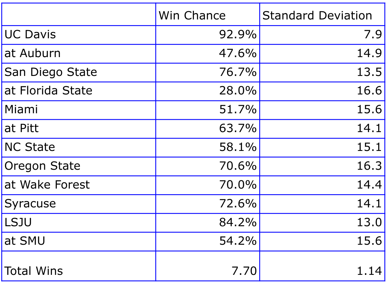 Likely wins: UC Davis, SDSU, OSU, at Wake Forest, Syracuse, and Big Game
