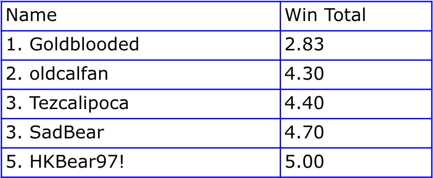 Finally, we have those whose predictions for each game were closest to the community average.