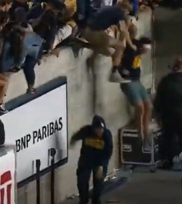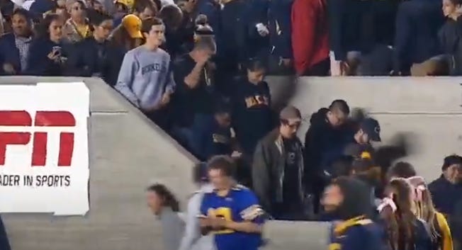 There are two ways to get onto the field after a Cal game. I know which way I got onto the field after this one, and my knees wish I had used the other option: