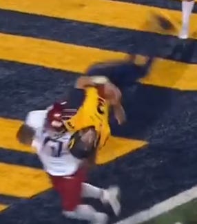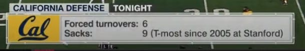 Adam Amin marvels that Cal has 8 sacks against “one of the best offensive lines in college football,” and my reaction to that statement is that while Wazzu under Leach typically did have good lines, they also benefited greatly from a system that usually gets the ball out fast - too fast for a pass rush to get there. But Cal’s secondary had the dudes and the scheme to force Falk to hold onto the ball, and disaster ensued.
