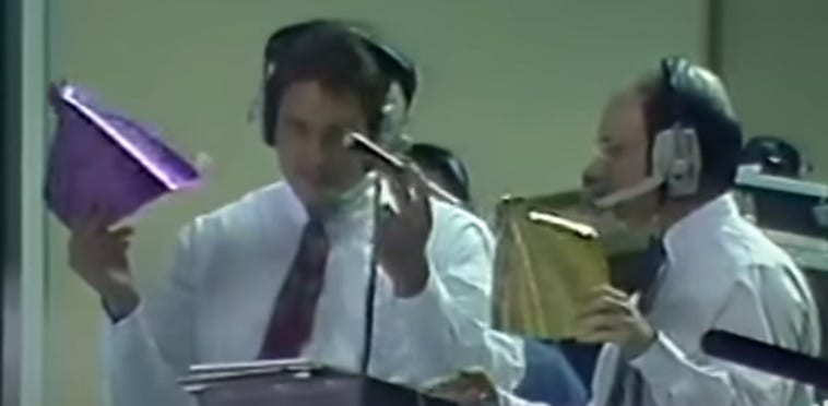 ESPN’s announcers wish a Happy New Year 1994 to those on the east coast to a game played in the central time zone, primarily being watched by fans in the west and central time zones.