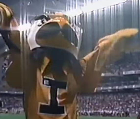 The announcer says that Jerrott Willard’s greatest asset is his speed, which is just goofy when clearly his biggest asset is his abs. Meanwhile, Iowa finally completes a pass on 3rd down that comes up a yard short. Iowa, desperate for a first down, does the cowardly pretend-to-go-for-it-to-try-to-pull-the-defense-off-sides thing that never works. It doesn’t work, and Iowa punts. The Bears respond with their first three-and-out.