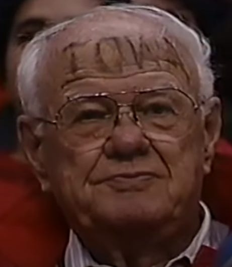If you asked me what would be both the goofiest and laziest way to express your team spirit, this is close to what I would recommend. “BARB I HAVE TO LET FOLKS KNOW I’M AN IOWA FAN, NOW GET IN HERE AND SHARPIE MY FOREHEAD!”
