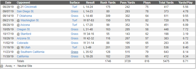 I mean, sure, everybody gets torched by Oklahoma’s offense. But 63 points allowed to Washington State? Nearly 8 yards/play and 48 points to Oregon State? When you can point at that last performance against Cal as a better than average showing, you know it was a rough year.