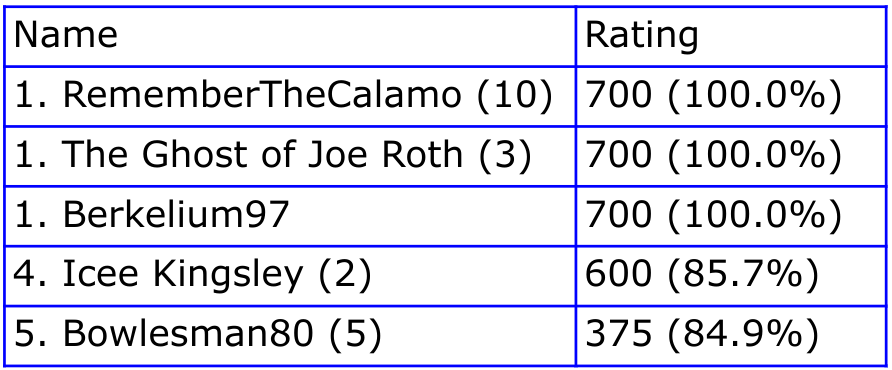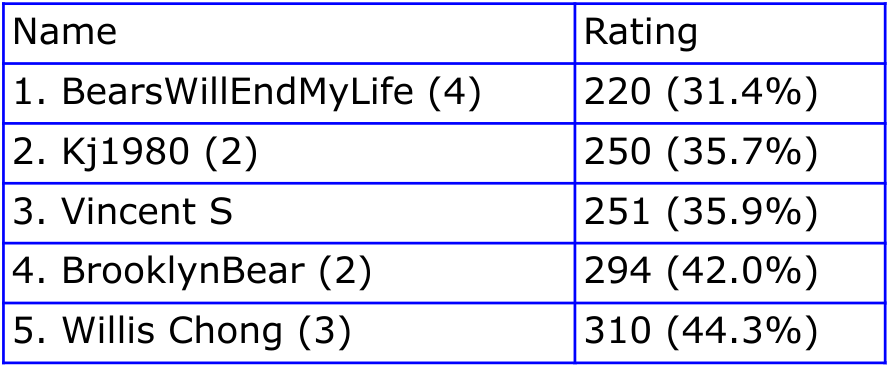Thanks to all who participated! Check back Saturday evening for our final regular-season ratings form of the year.