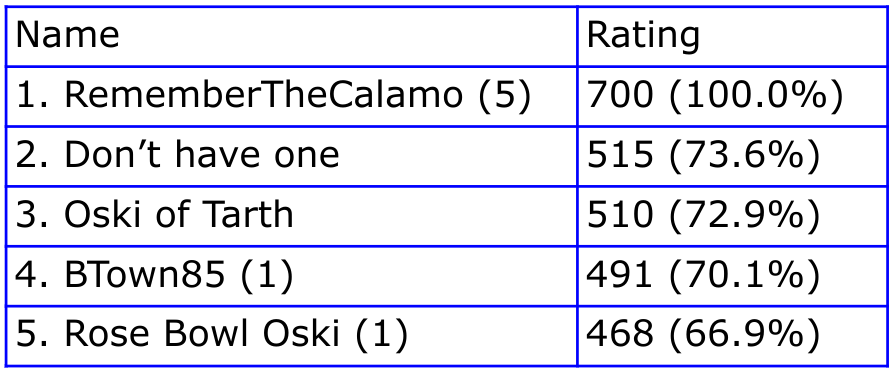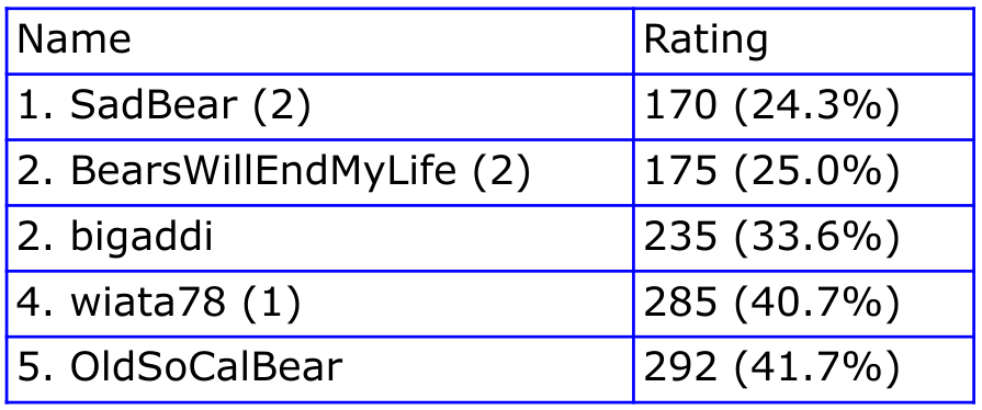 "[W]hile Bowlesman80 misses the number-two spot for the first time this season."