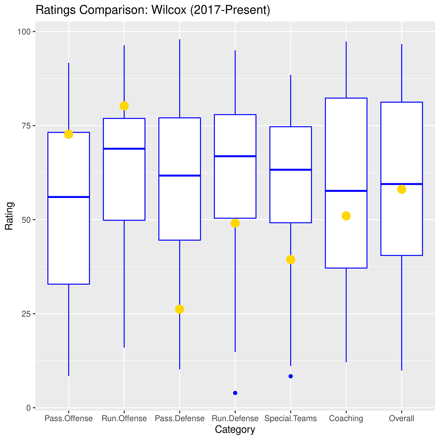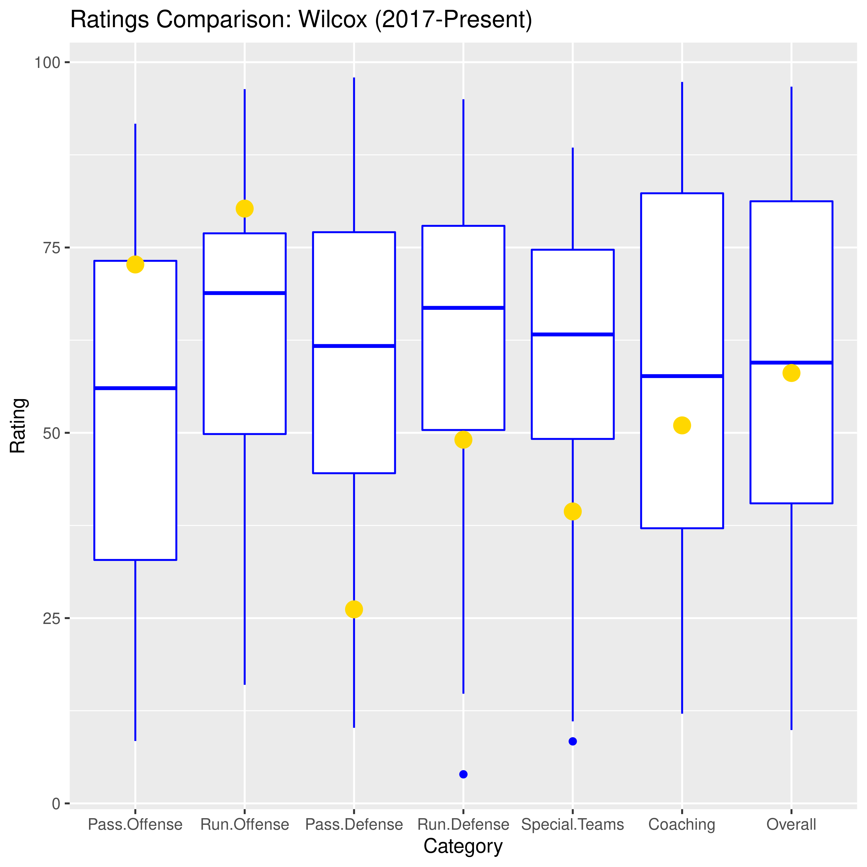 Compared to the rest of the games under Wilcox, this was unusual in several categories. We’ve seen many outside-the-box(plot) ratings this season…
