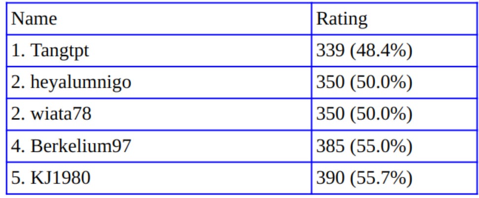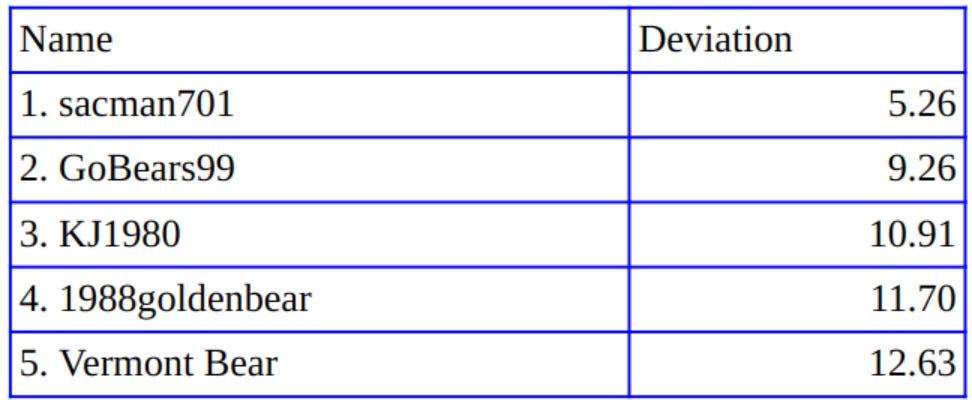 Three awards, as usual: highest ratings, lowest ratings, and those closest to average.