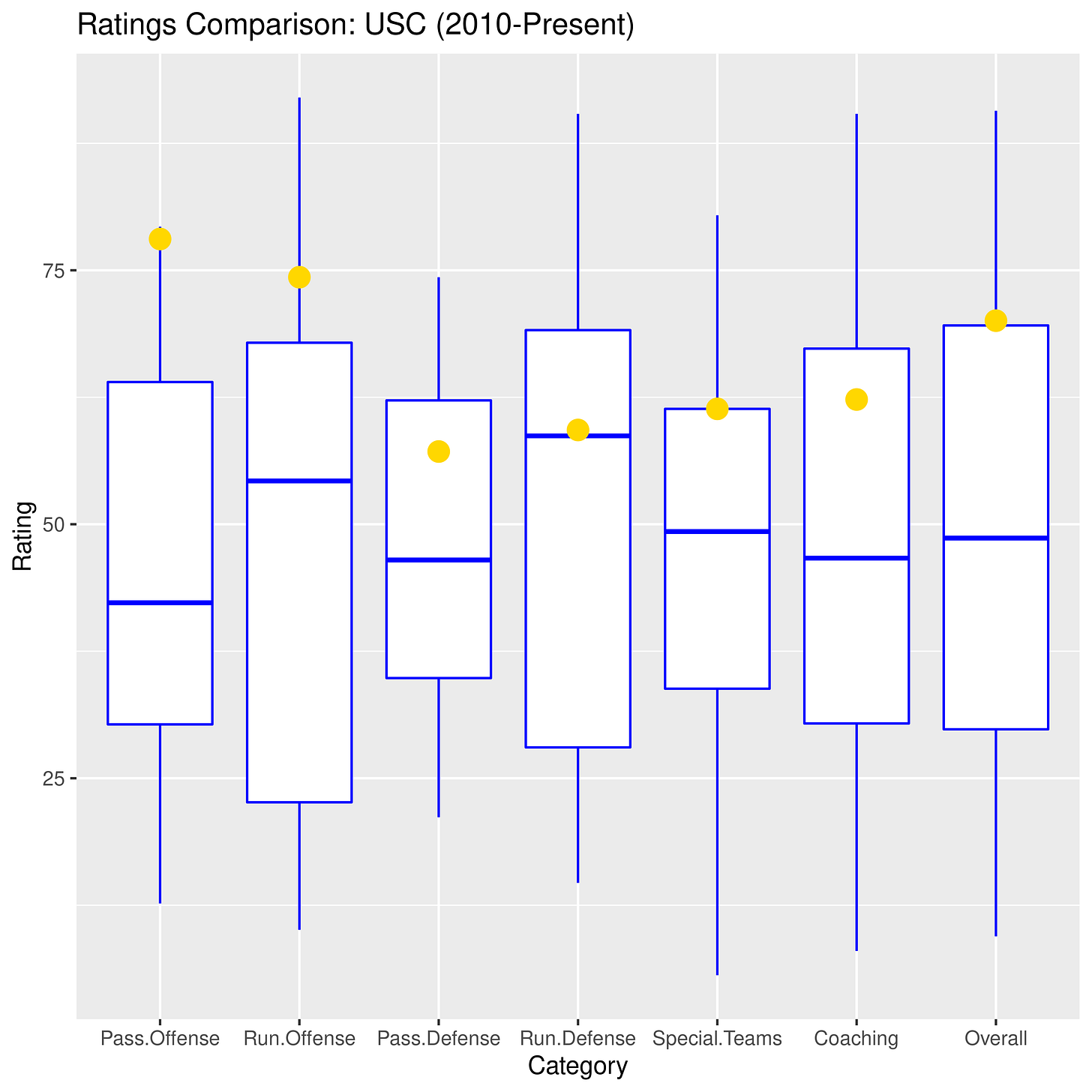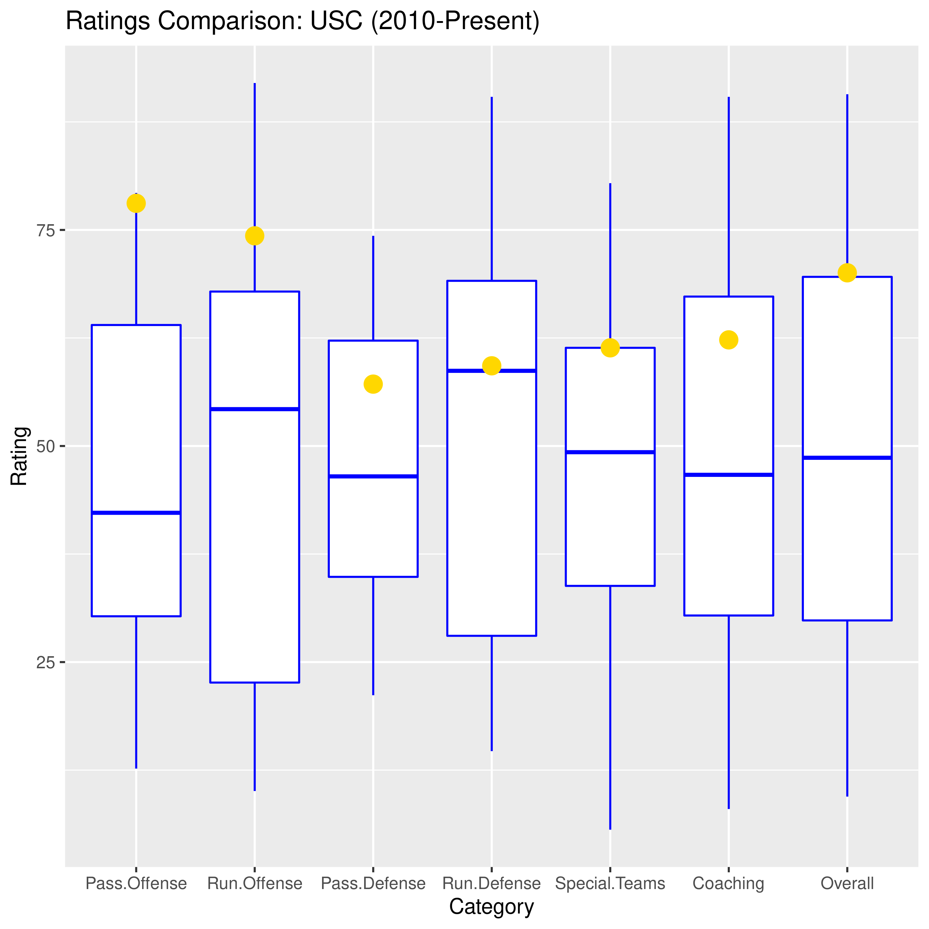It has been a rough set of games against USC since we started this series back in 2010. As a result, this is clearly one of the better sets of ratings for a matchup against the Trojans.