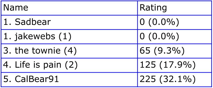 2-4 were surprisingly close, separated by only 5 points on a 700-point scale.