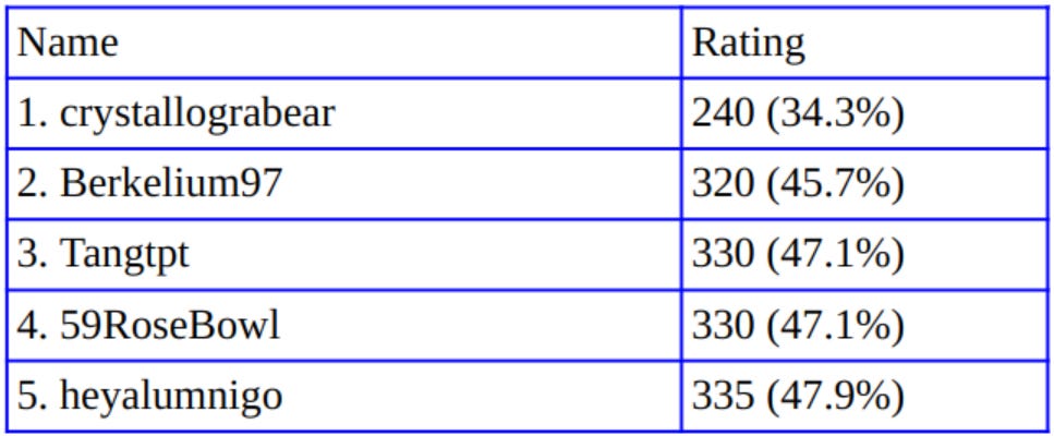 Long after the inevitable heat death of the universe, there will be one final source of light in the universe: Calamo’s endless sunshine pumping. After that, there’s a big gap to the next-best scores.