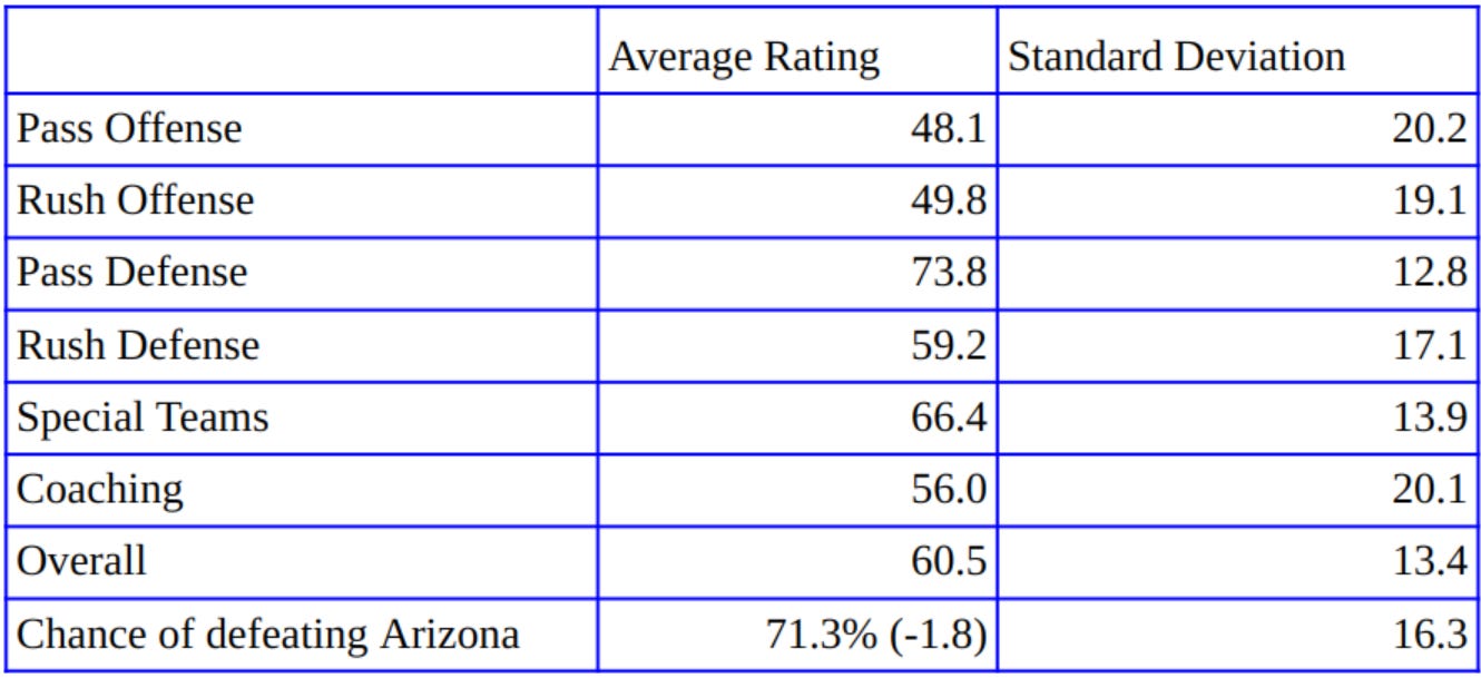 Predictions of a win over Arizona have slipped slightly, but that’s within the margin of error.