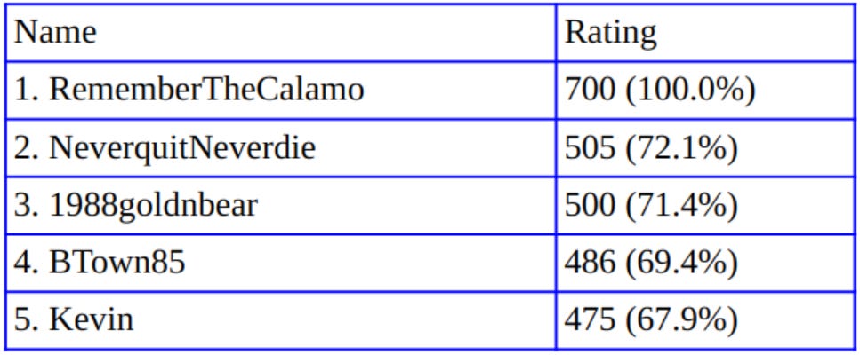 goldenone posts a 3.07, the best score of the season so far. Nice work!