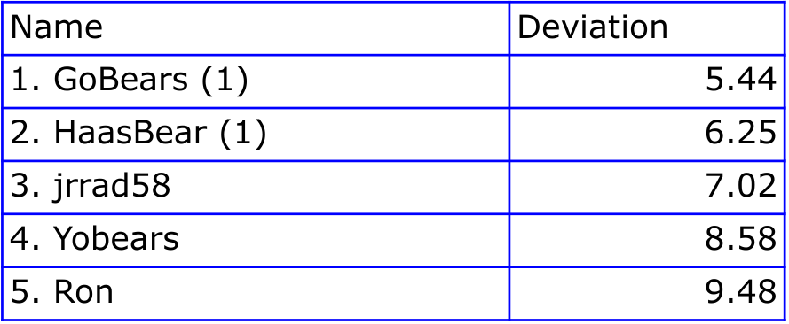 We have not had many repeat winners in this category this season. Although it’s hard to qualify for this award when we consistently have standard deviations in the 20s over the last several games.