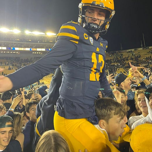 Second, you have to feel happy for the Cal Class of 2023 (except how the concept of a class of ‘23 makes the rest of us alumni feel like we were born in the Pleistocene). Their freshman season (2019) was the most successful of the Wilcox Era and a season in which the Axe came home for the first time in a decade. Although they have since suffered through three disappointing football seasons, they are the first class since the Class of 2010 to have experienced three Big Game victories. And they may have been a missed extra point away from being the first graduating class since 2007 to see the Bears go undefeated against the Lobsterbacks. Ah well, there’s always hope for the Class of 2025, who have yet to suffer a LSJU win.