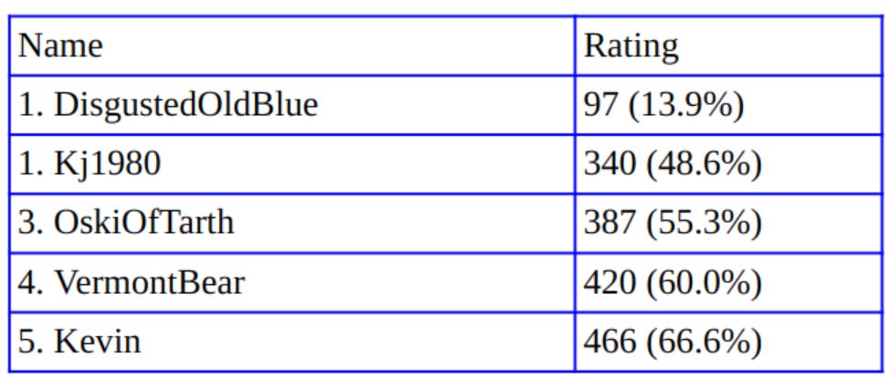 Only three ratings were below passing grades—not bad! Although I think DisgustedOldBlue may have turned the game off a little too soon…