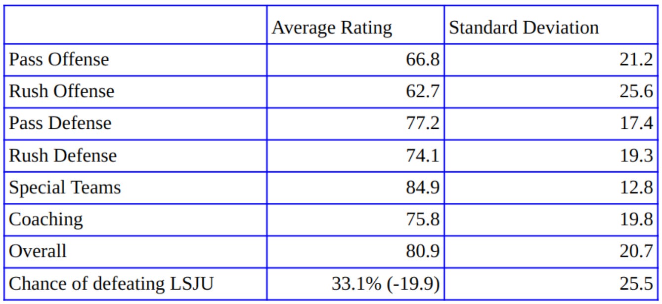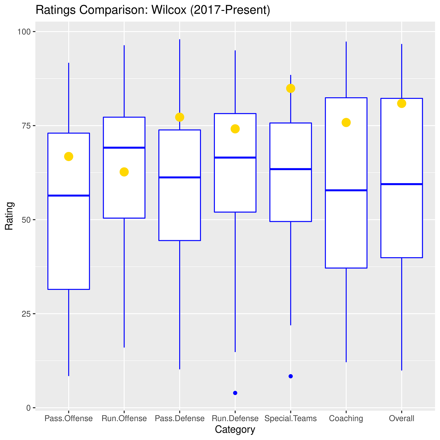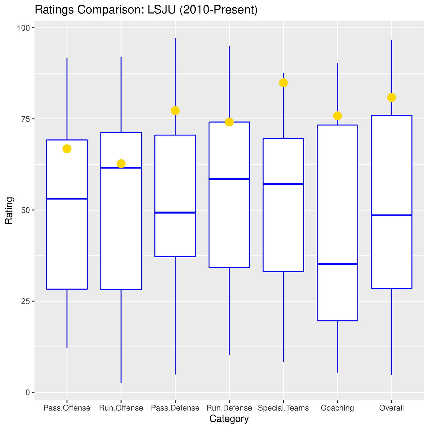Run offense was about average (albeit it has the highest median rating of all these categories) and everything else was well above average.