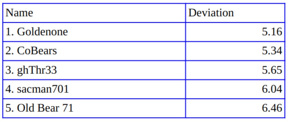 After seeing far too many double digit scores in recent weeks, it’s nice to see some deviations down in the 5s and 6s.