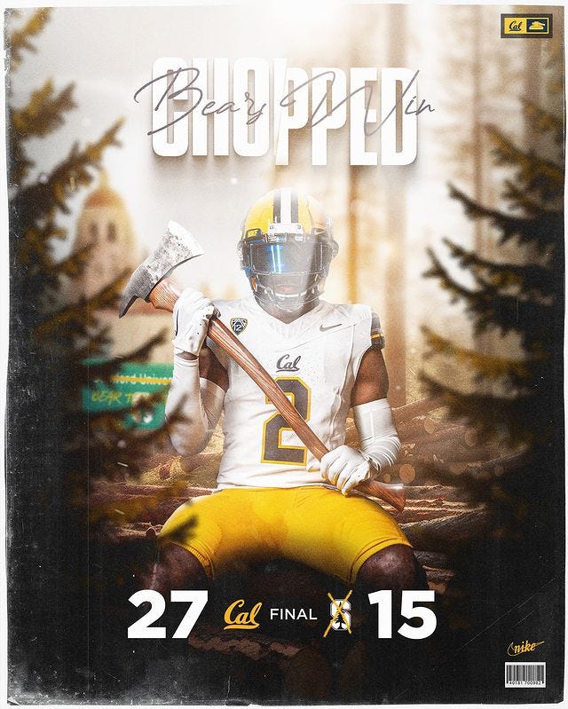 jakewebs: Not a resounding statement like 2021 or a somewhat messy win like 2022, but a day in which Cal was clearly the better team and seemed to be clearly favored throughout the game. The postgame celebration on the field was well-earned, and was yet another moment in which the incredible character of these young men was on display. WE KEPT THE AXE!