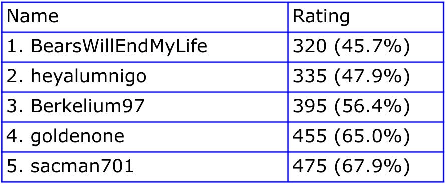 Thanks again to everyone who participated this season. Participation became lean during that stretch of losses early in the season, so I’m especially thankful to all of you who stuck it out during the lowest lows of the season. Until this series picks back up on Wednesday, September 7th 2022 (that feels like eons away), Go Bears!