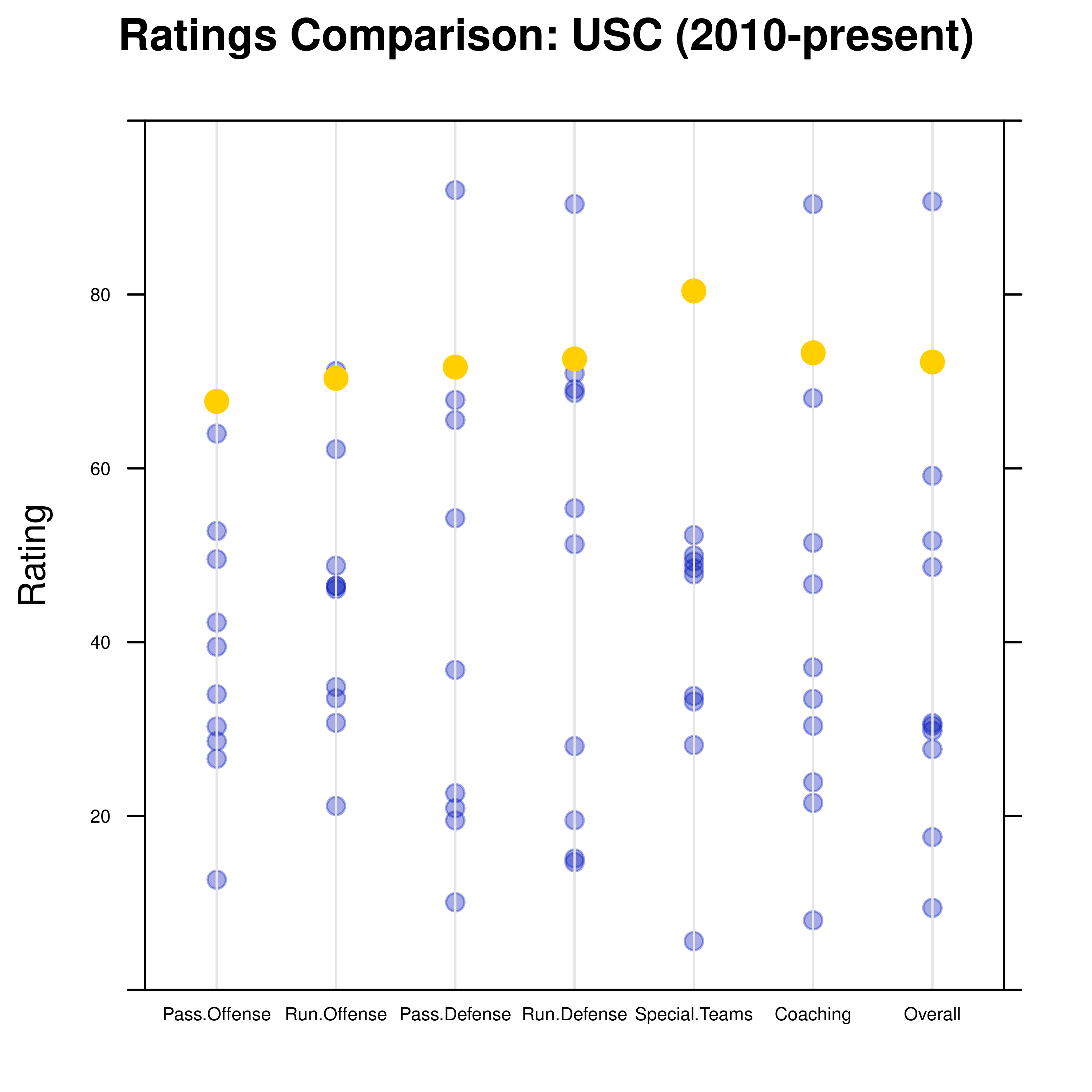 We’ve only seen two wins over USC since we started this series, so the ratings will naturally compare quite favorably.