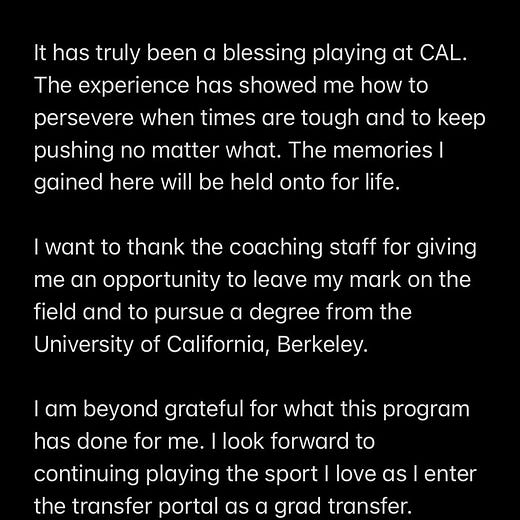 This one hurts though because he was my favorite RB. Wish him the best of luck (at a school not playing Cal next year).