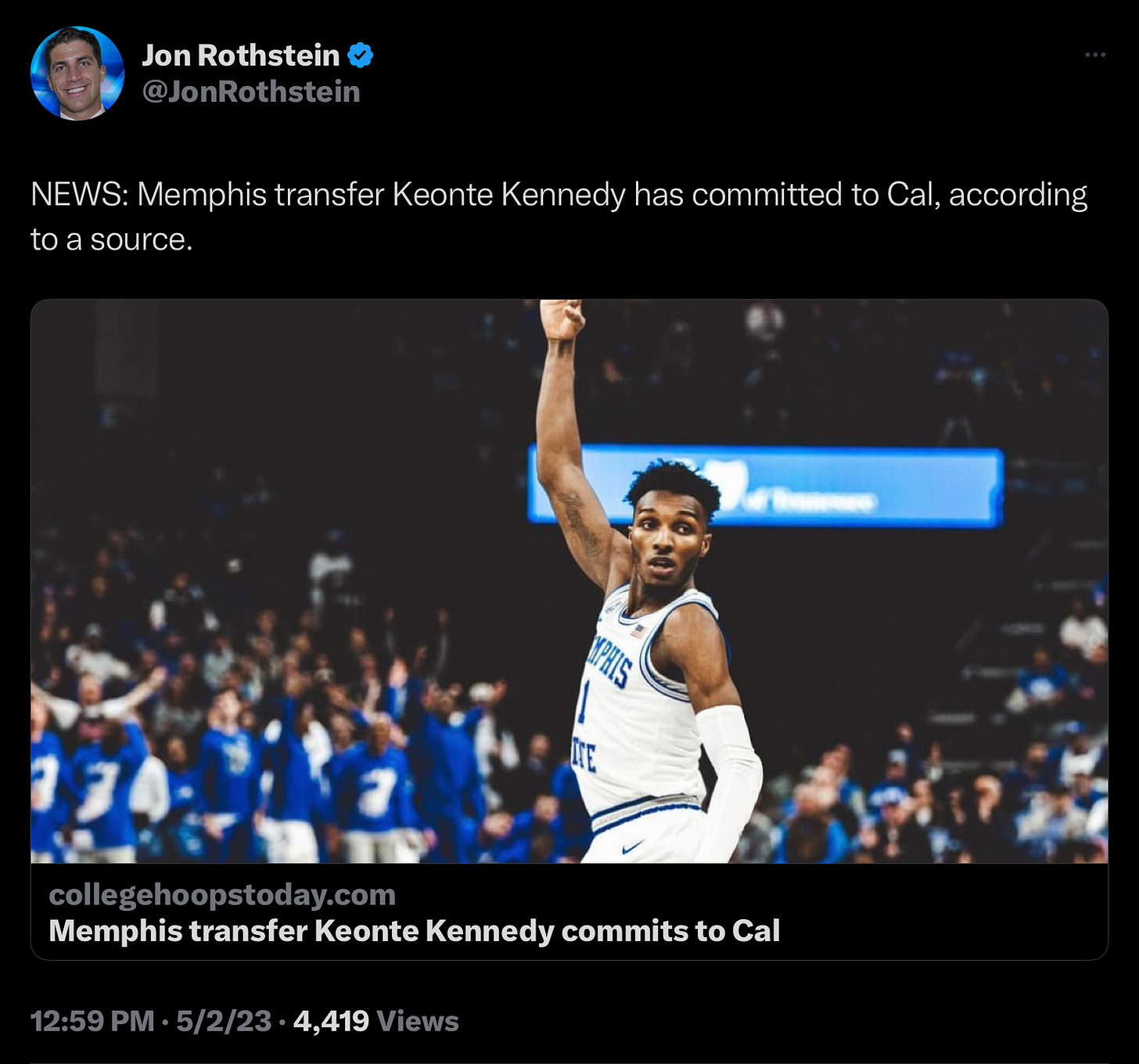 Report: Cal Basketball adds grad transfer Keonte Kennedy from Memphis (Updated)