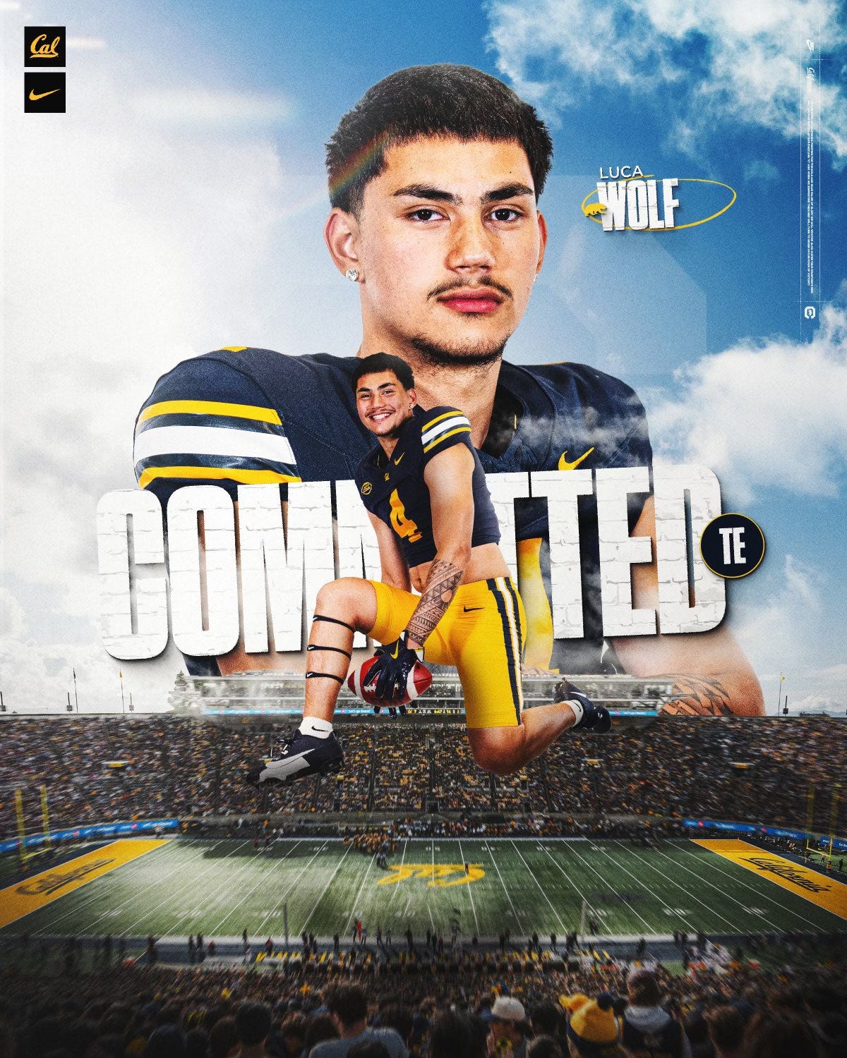 Per Luca’s Twitter, the 3* former FIBA basketball player and u19 Austrian National turned 1 year TE prospect via the NFL Academy Pipeline commits to Cal. The athletic TE holds offers from USF, Toledo, and UVA among others.